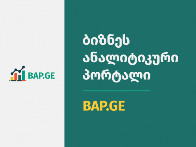 The portal enables users to evaluate the activities of diverse types of companies and industries, their effectiveness, size, market share, profitability, and annual dynamics. BAP.GE uses financial and non-financial information submitted to Service for Accounting, Reporting, and Auditing Supervision department (SARAS) by various categories of the companies. The portal includes information about business activities in Georgia, as well as most of the companies operating within each activity. Through constantly updated business and economic reports on the portal, it is possible to get information about different sectors, business directions, and economic trends, as well as market reviews.