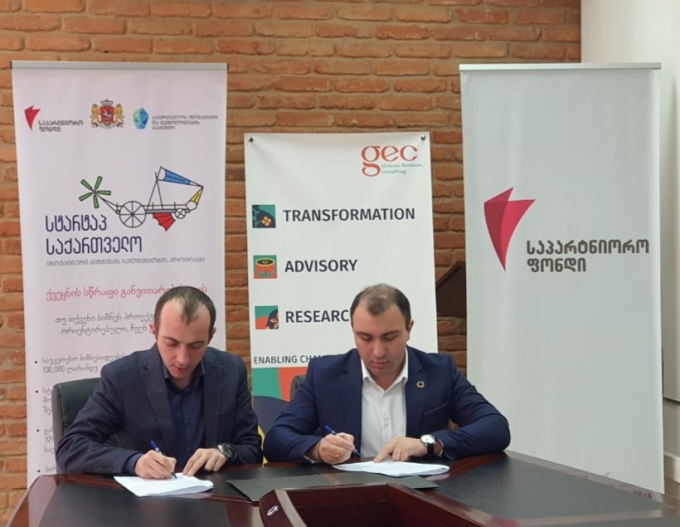 The memorandum is aimed at joint efforts to support the development of Startup Georgia beneficiaries, through providing access to financial resources, implementing consulting services to strengthen businesses and organizations, improving business processes, developing financial and managerial reporting, and other relevant needs.