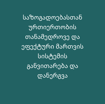 შედეგი: პროექტის შედეგად სისტემატიზირდა სააგენტოს კომუნიკაციის პროცესები და მესიჯინგის სტრატეგია, გაძლიერდა მედია ურთიერთობები და დაინტერესებულ მხარეებთან თანამშრომლობა. ასევე გაუმჯობესდა შიდა და გარე კომუნიკაციის პრაქტიკა და უზრუნველყოფილი იქნა მდგრადი ინსტრუმენტები გრძელვადიანი კომუნიკაციის ეფექტიანად სამართავად.
