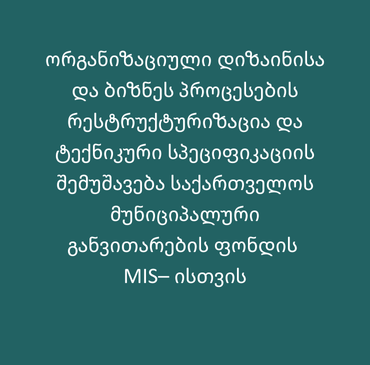 ორგანიზაციული დიზაინისა და ბიზნეს პროცესების რესტრუქტურიზაცია და ტექნიკური სპეციფიკაციის შემუშავება საქართველოს მუნიციპალური განვითარების ფონდის MIS–ისთვის
