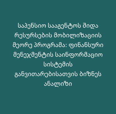 საპენსიო სააგენტოს შიდა რესურსების მობილიზაციის მეორე პროგრამა: ფინანსური მენეჯმენტის საინფორმაციო სისტემის განვითარებისათვის ბიზნეს ანალიზი